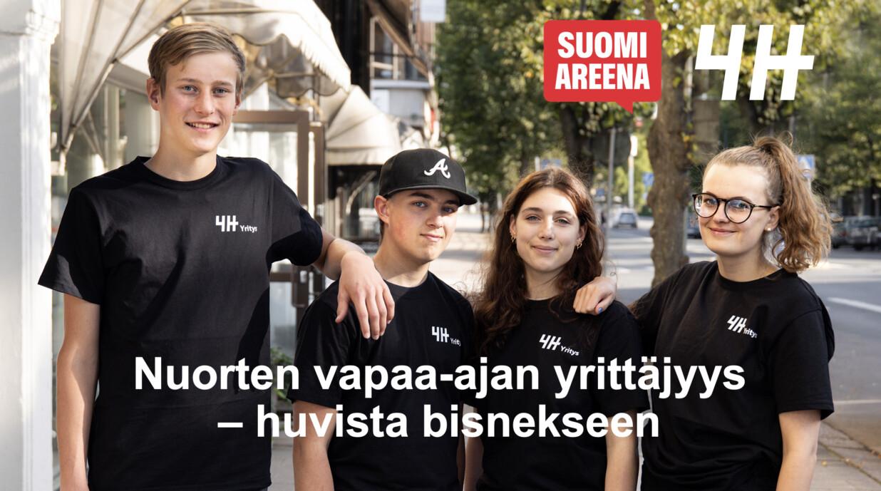 Nuorten yrittäjyys puhuttaa SuomiAreena-tapahtumassa Raatihuoneenpuiston lavalla 28.6. klo 11.00. Julkistamme SuomiAreenassa uutta tutkimustietoa vapaa-ajalla tapahtuvasta nuorten 4H-yrittäjyydestä.