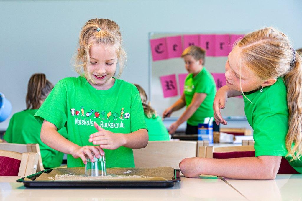 Ruokakoululeirien ohjaajina toimivat nuoret, jotka oppivat tärkeitä työelämätaitoja, kuten vastuullisuutta, ryhmänhallintaa ja suunnitelmallisuutta. Lisäksi he pääsevät ohjaamaan ja kannustamaan lapsia kehittymään monipuolisesti ja oppimaan uutta. Tilda Sivula, 15, työllistyy Multian 4H-yhdistyksen Ruokakoulun apuohjaajana Petäjävedellä heinäkuussa.