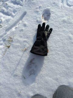Elsa bongasi ilveksen jäljen, askeleen pituutta vertailtiin käsineeseen.