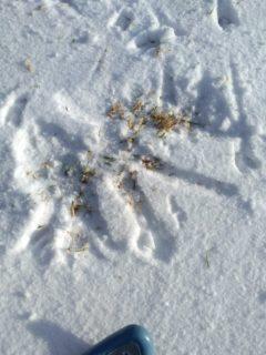 Ohjaaja Jaana oli käynyt edellisenä päivänä hiihtelemässä Talaskankaan luonnonsuojelualueella ja nähny suden jäljet.