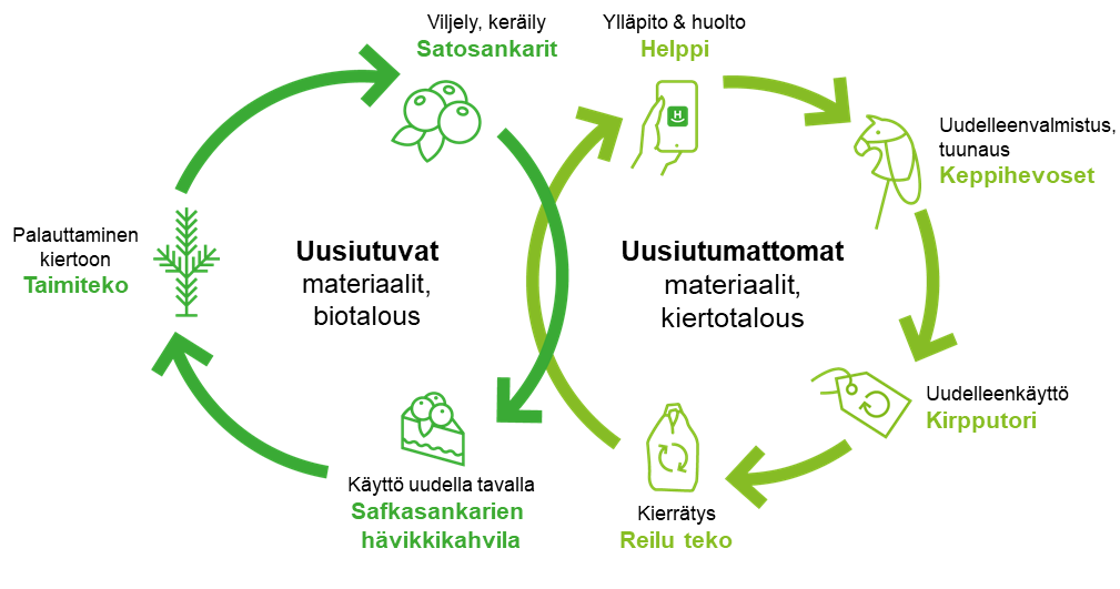 Sitran määritelmän mukaan kiertotalous on talousmalli, jossa ei tuoteta jatkuvasti lisää tavaroita, vaan kulutus perustuu omistamisen sijasta palveluiden käyttämiseen: jakamiseen, vuokraamiseen sekä kierrättämiseen. Materiaaleja ei lopuksi tuhota, vaan niistä syntyy yhä uudelleen uusia tuotteita. Biotalous on puolestaan taloutta, joka käyttää uusiutuvia luonnonvaroja ravinnon, energian, tuotteiden ja palvelujen tuottamiseen.