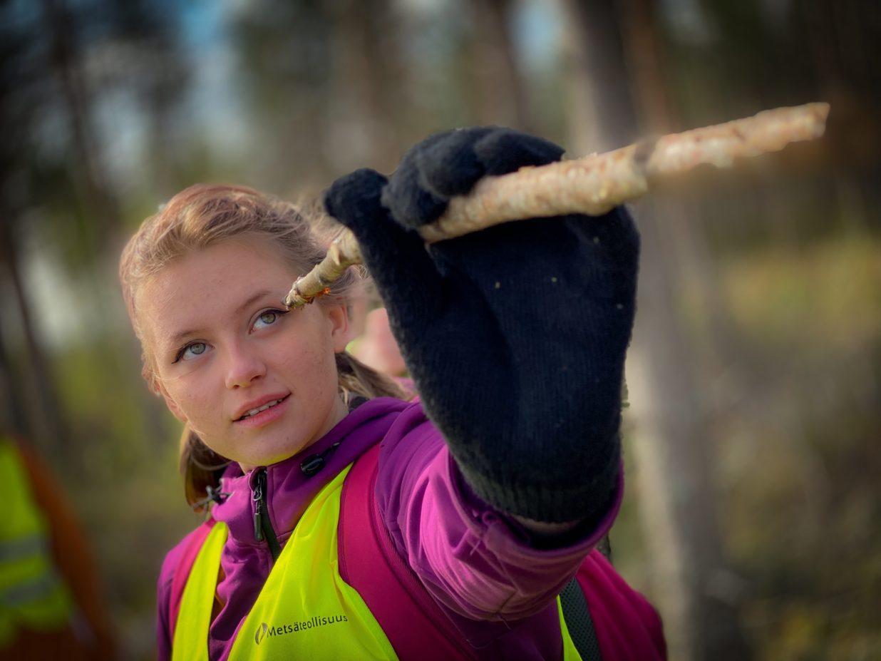 ”Tänään oli vauhdikas metsäpäivä, koska koulun pitikin lähteä tuntia sovittua aikaisemmin. Minulla oli iso porukka, jotka osallistuivat hienosti. Oivalluksia tuli nuorilta paljon ja ne olivat sellaisia kivoja huudahduksia, että ’tehdäänkö tämäkin muka puusta’. Taimien istutus herätti myös kiinnostusta nuorten parissa”, Toroskainen avaa kokemuksiaan.