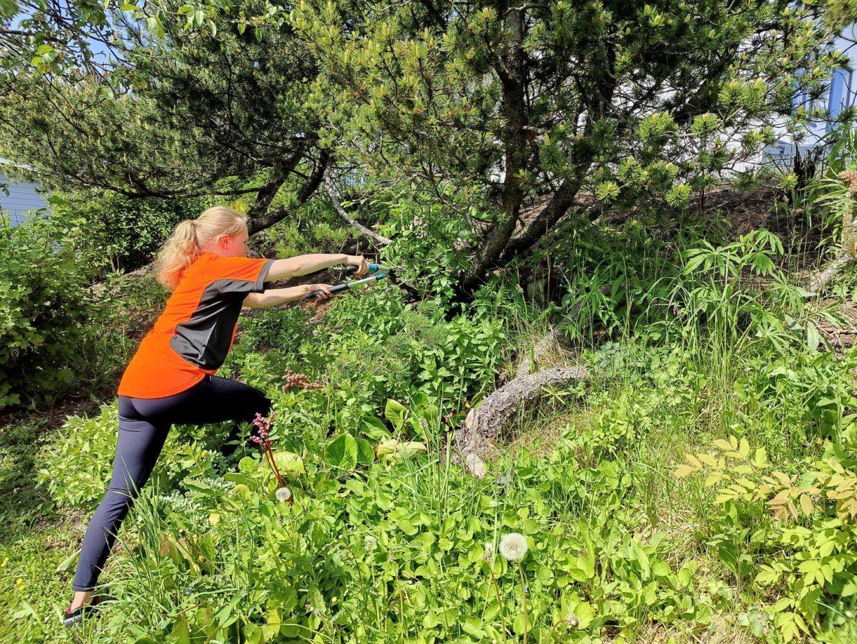”Koronatilanne on vaikeuttanut kesätöiden saamista, vaikka hain aktiivisesti töitä. Olen iloinen, että sain kesätöitä. Tämä merkitsee minulle tosi paljon, että pääsimme tänä kesänä auttamaan apua tarvitsevia pihojen hoidossa”, sanoo 4H:n kautta työllistetty kesätyöntekijä Ella Anderson.