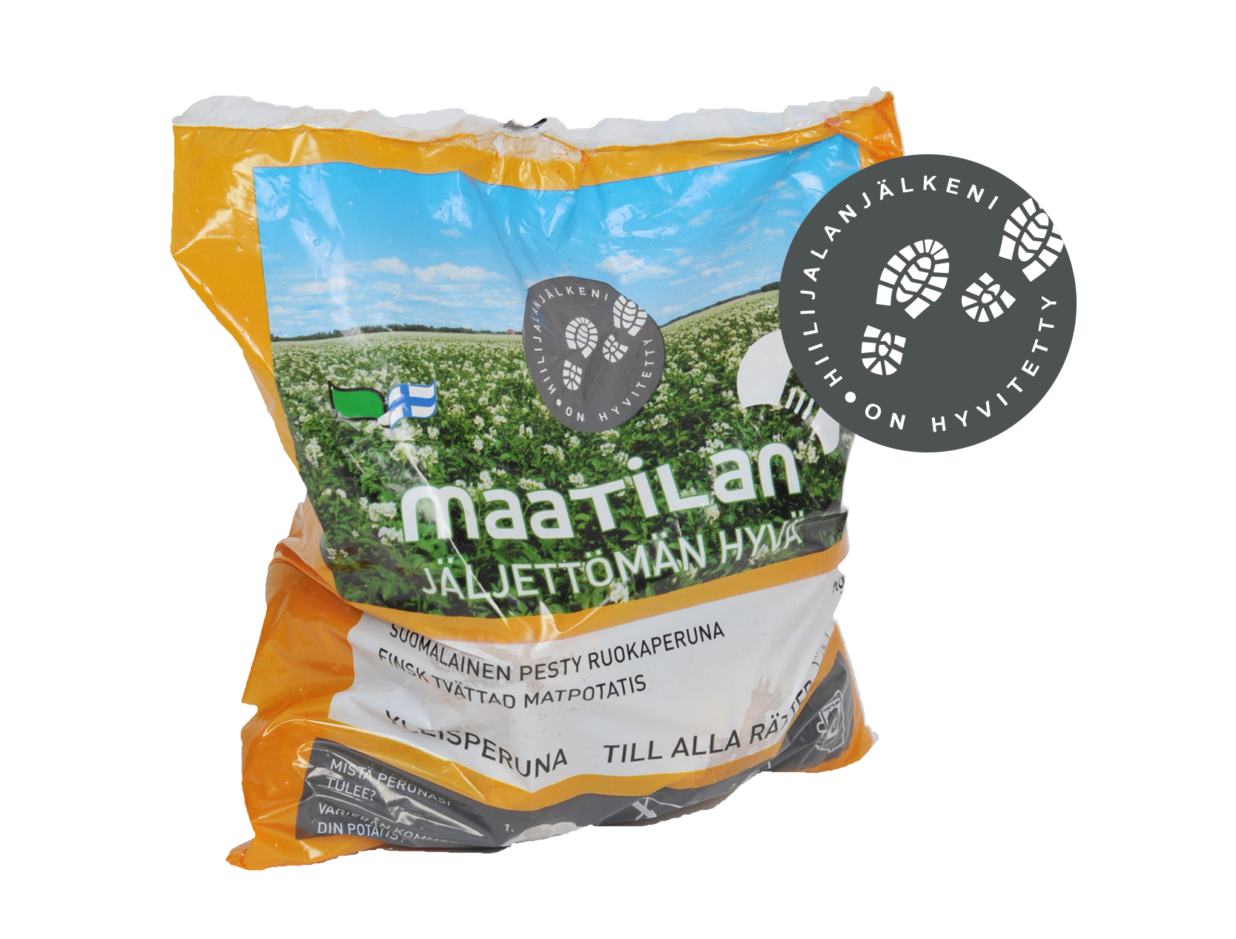 – Peruna on jo valmiiksi ilmastoystävällinen tuote, joten aloimme viime keväänä pohtia, miksemme poistaisi loppuakin kuormitusta. Niin syntyi ajatus Jäljettömän Hyvästä perunasta ja hiilijalanjälkitunnuksesta, jonka avulla jokainen voi helposti seurata kulutusvalintojaan, kertoo Potwell Oy:n toimitusjohtaja Teppo Vetoniemi.