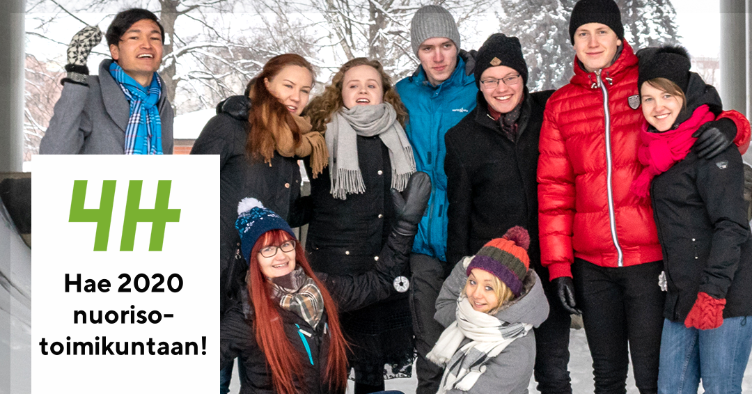 Haun perusteella Nuorisotoimikuntaan valitaan jäsenet vuodelle 2020. Verkostoon valitaan 12 nuorta. Valintakriteerejä ovat kokemuksesi 4H-toiminnasta, oma motivaatiosi olla tekemässä ja vaikuttamassa sekä valtakunnallinen kattavuus. Toiminta perustuu aktiiviseen vapaaehtoisuuteen eikä luottamustehtävästä makseta palkkaa. Edustustehtävien ja kokousten matkakulut korvataan.