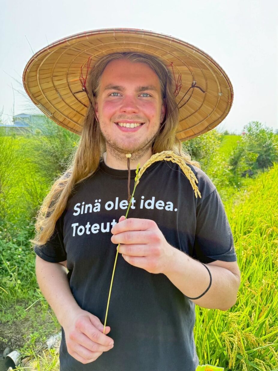 Toinen perhe sijaitsi Hsinchussa, Miaolin vieressä pohjoisemmassa. Perhe eli nelikerroksisessa kaupunkipientalossa, mutta heillä oli riisifarmi, jossa vierailimme pariin otteeseen. Perhe teki yhteistyötä opiskelijaryhmän kanssa, jonka tarkoitus oli tuoda maataloutta tunnetuksi lapsien keskuudessa. Pääsin tätä kautta oppimaan taiwanilaisesta koulusta ja jakamaan tietoa suomalaisesta koulutusjärjestelmästä, jonka moni tiesi olevan huippuluokkaa.
