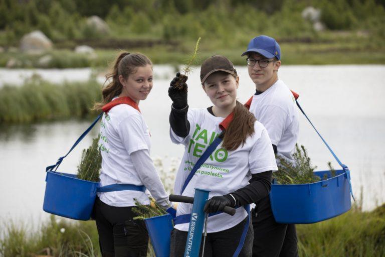 Taimiteossa yritykset, organisaatiot, yhteisöt tai yksityishenkilöt voivat ostaa kuusen ja männyn taimia, joita paikalliset nuoret istuttavat ympäri S…